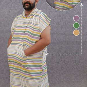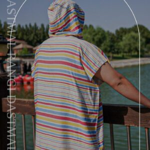حوله هاي پانچ نخي توليد شده در مجموعه ي دستمال رنگي جيب دار كلاه دار و بدون آستين هستند اين حوله ها قدرت جذب اب فوق العاده بالايي دارند
